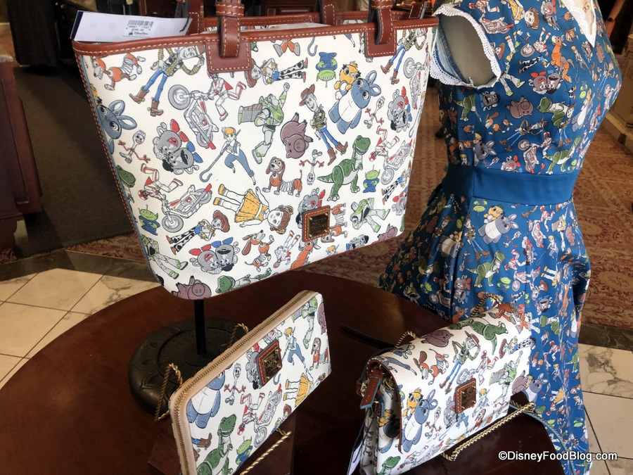 is our first stop to check out merchandise where the new Toy Story Dress Shop Dress ($128.00) and Toy Story Dooney & Bourke bags are currently in stock.