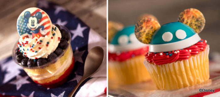 Disney’s Polynesian Village Resort will serve up a Raspberry Dole Whip Cone in a blue cake cone with red, white, and blue sprinkles at Pineapple Lanai on July 4. And at the Resort’s Oasis and Barefoot Pool Bars, you can order the Uncle Slam: rum blended with cream of coconut, pineapple juice, and strawberry purée with a floater of blue curaçao. (This will be available in a non-alcoholic version, too!) And Capt. Cook’s and the Kona Coffee Bar will sell a 4th of July Cupcake.