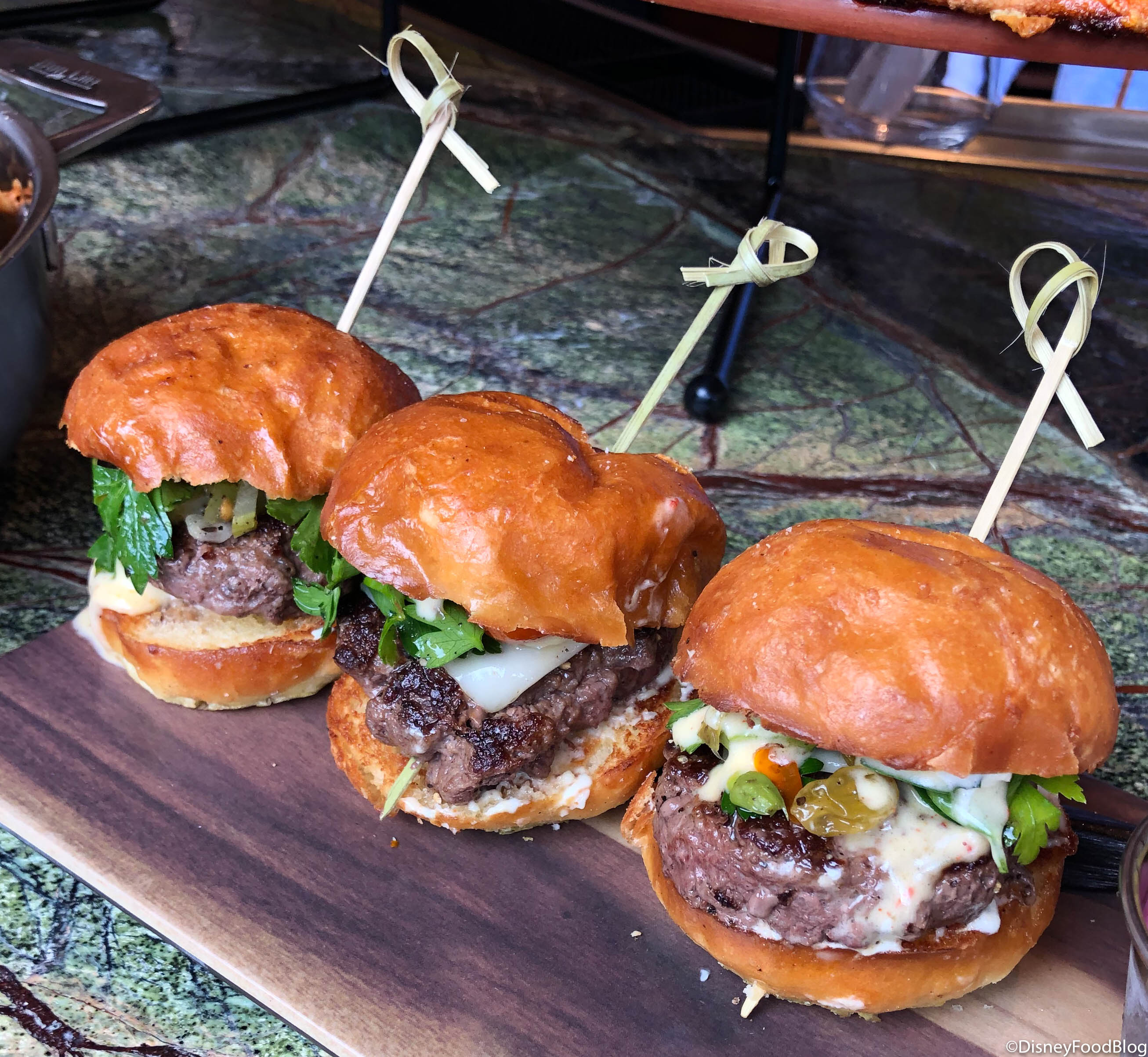 The Cali Sliders ($21) appetizer comes with three baby burgers. These are comprised of an American wagyu patty, tomato, spicy swiss cheese, and artichoke aioli.