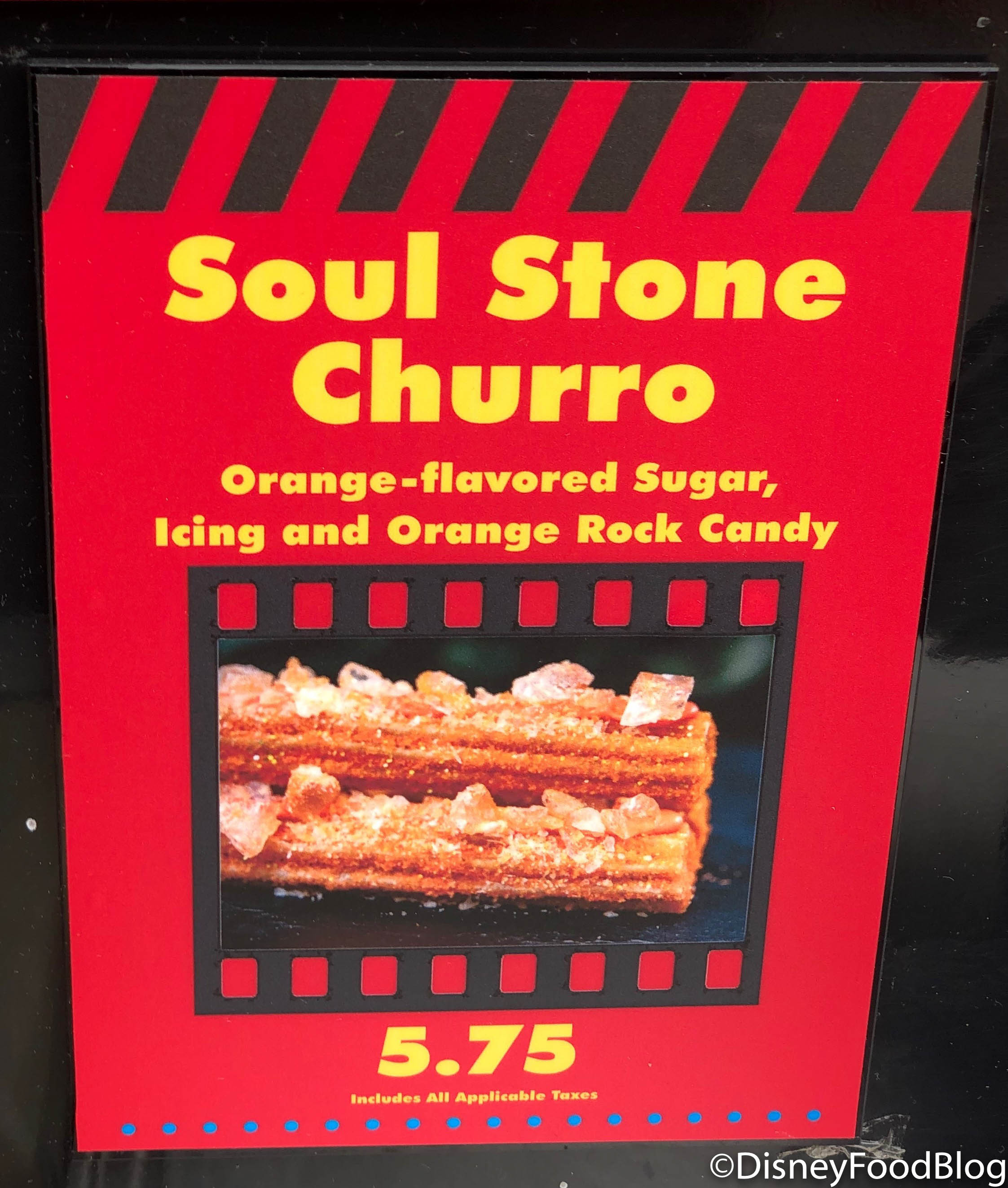 The Soul Stone Churro can be obtained at the Churro Cart in Hollywood Land! The fruity flavors are back again, but instead of cherry and blackberry, the churro has orange-flavored sugar, icing, and orange rock candy.