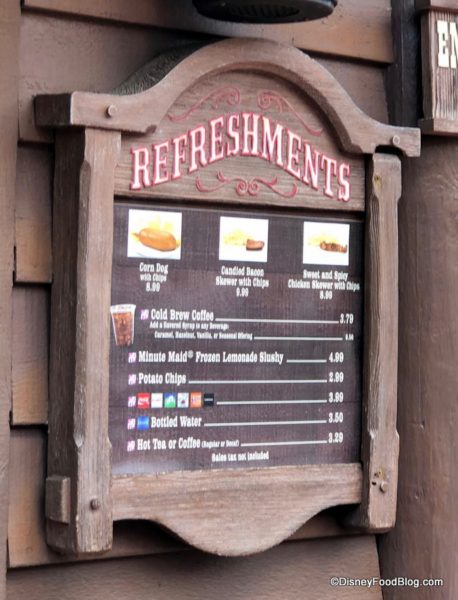 is a small, permanent kiosk located in Magic Kingdom’s Frontierland. It’s across from Prairie Outpost and Supply and just around the corner from Splash Mountain.