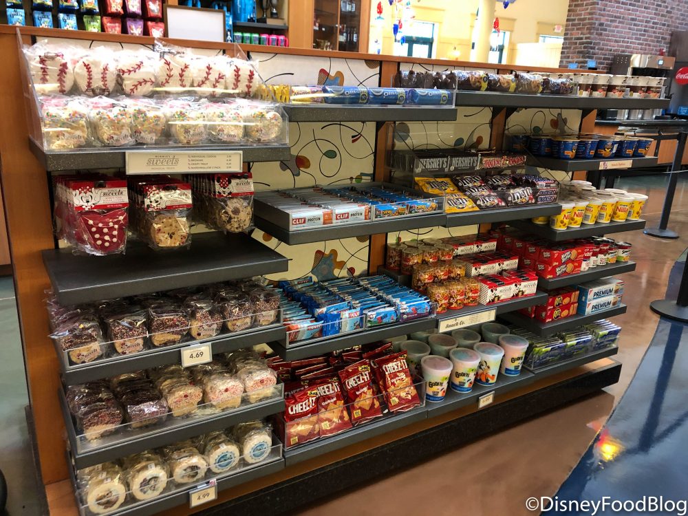 The beverage and condiment station before the seating area has everything you might need to make sure your eats are dressed to the nines. And it even has a microwave to heat up any frozen items you might purchase in the refrigerated section of the shop. (FYI, many DVC resorts do offer frozen items in their shops since so many of the guests have freezers in their villas and cook their own meals while staying on property.)