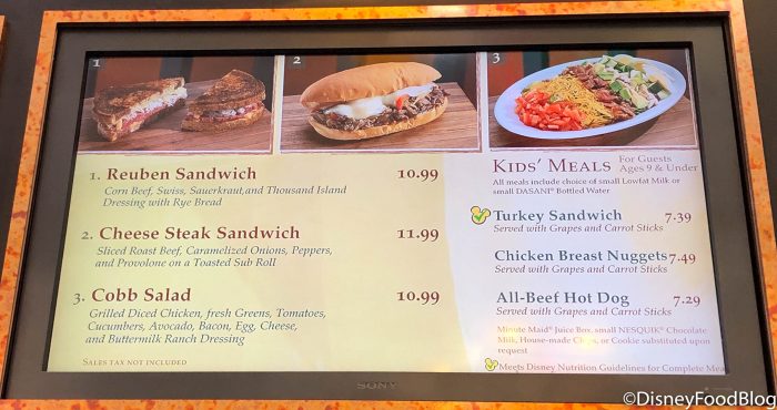 We spotted numerous eats on the menu, including kids’ meals and sandwiches…