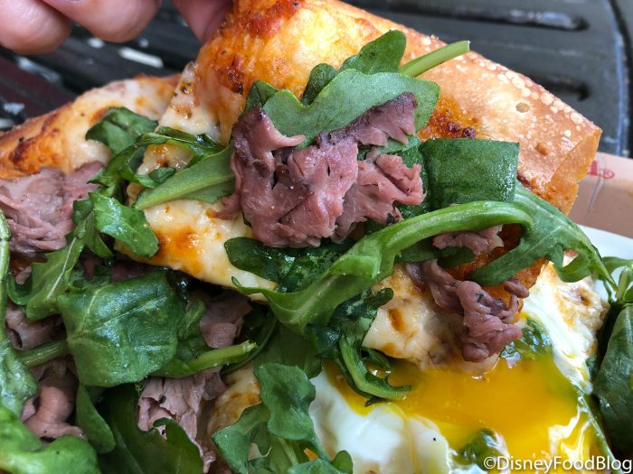 While both meals were yummy, the Beef and Egg Thin-Crust Pie was AMAZING! It consisted of sliced roast beef, tomato pesto, a three-cheese blend, and a sunny-side-up egg!
