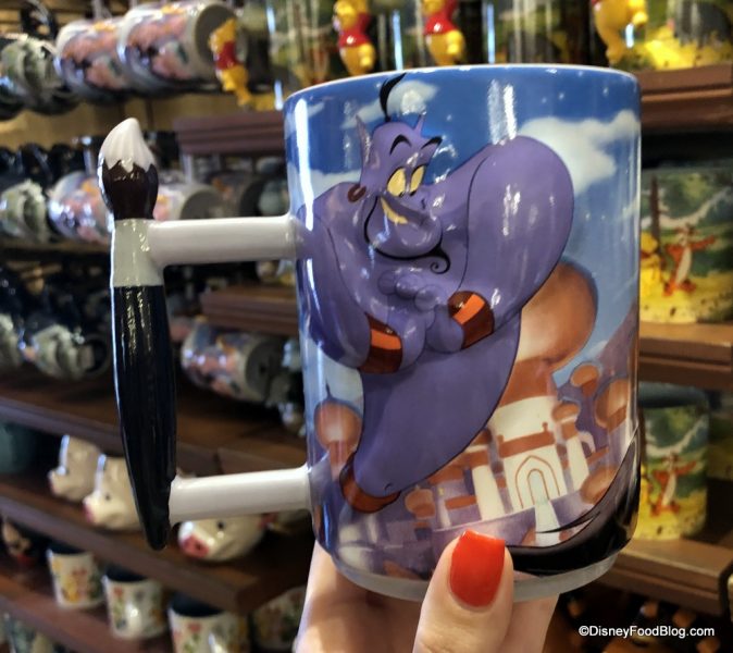The Emporium was also carrying some new character mugs when we were there! We spotted an Aladdin-themed paintbrush mug ($19.99) featuring Aladdin, Jasmine, and Genie.