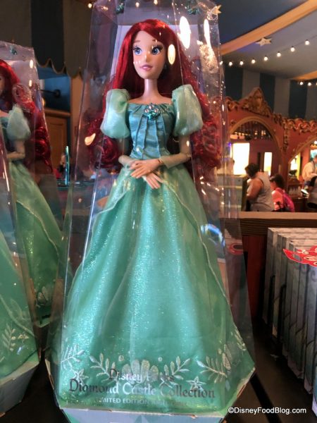 If you love collectibles, you’re in luck! While we were in Big Top Souvenirs, we found the Ariel doll ($129.99), which is part of the Disney Parks Diamond Castle Collection. We previously spotted the doll in Epcot.