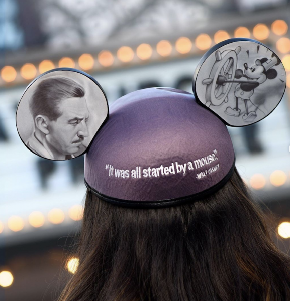 The backside of the ears is stitched with the Walt Disney quote, “It was all started by a mouse.”