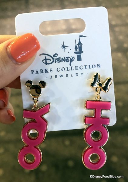 Also in Mouse Gear, we found Yoo Hoo necklaces and earrings for $14.99 each. We love the vibrant pink color!
