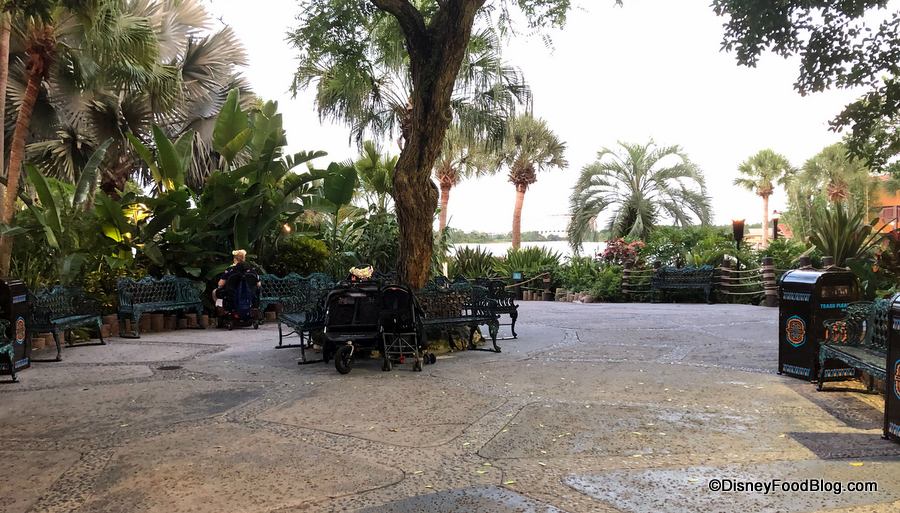 Just before you enter Luau Cove, there’s a large waiting area (outdoor with no covering) where you’ll hang out until cast members begin guiding guests to their pre-assigned tables.