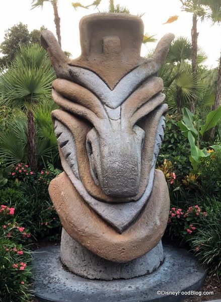 After checking in, we were told we could pose for a PhotoPass pic with the Poly Lobby’s central tiki figure (that’s the carved gentleman in the back, not the friendly guy with the camera) or follow the signs for Luau Cove.