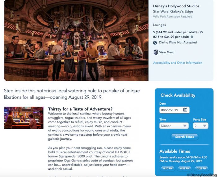 You can make a reservation for Walt Disney World’s Oga’s Cantina online now!