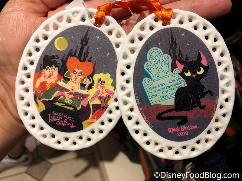 Feelin’ witchy? Or looking to add a little bit of spook to your Christmas tree? Then, look no further than the 2019 Hocus Pocus ornament. This two-sided ornament has our favorite bewitched sisters on one side and Thackery Binx is on the other side!