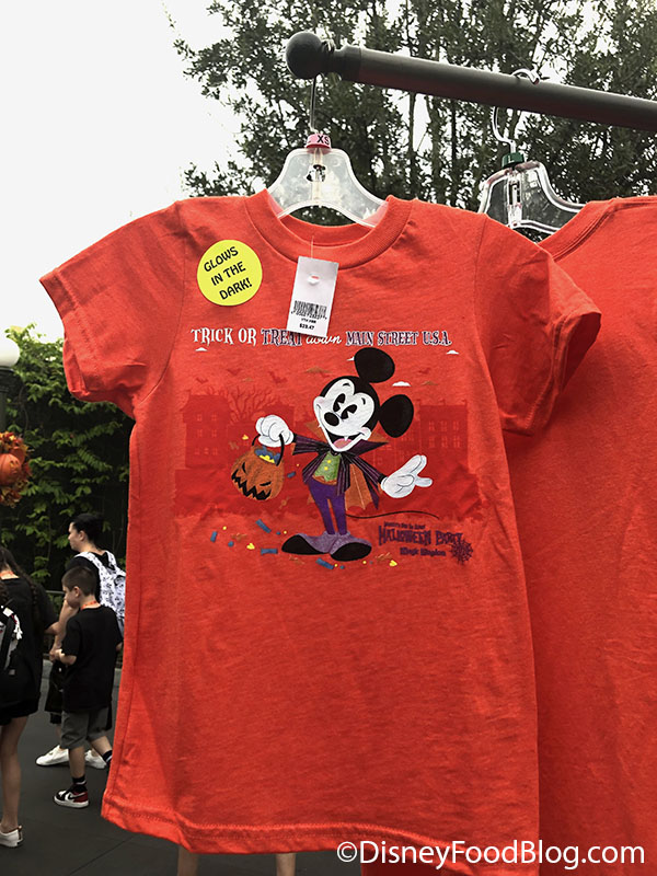 Her’s another option with Mickey looking much more spooky! This unisex tee is $29.99 and can be found at locations like The Emporium and Big Top Souvenirs during the party!