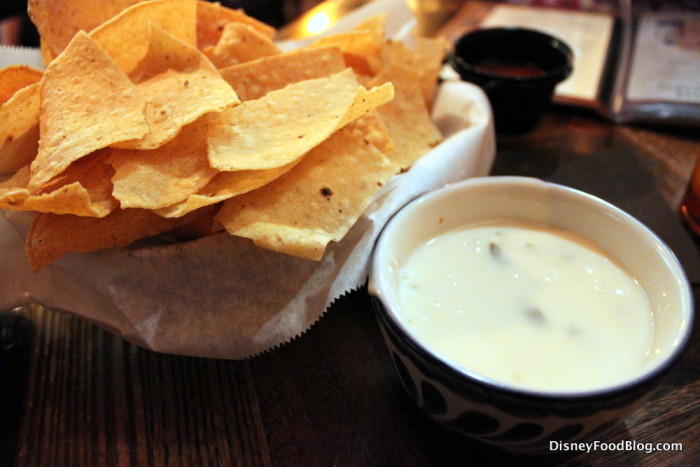 Creamy white queso with chips is a staple with Mexican food. This queso blanco sometimes at La Cava del Tequila in Epcot for $10, though, kicks Mexican spice up a notch with the chunks of jalapeño generously mixed with the cheese.