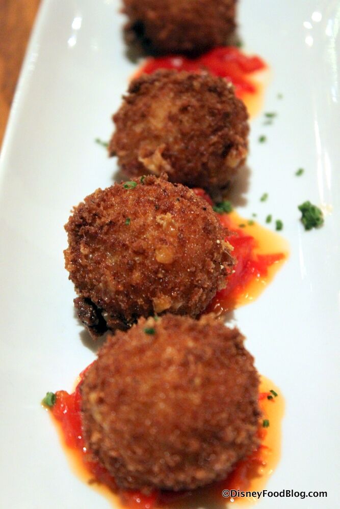 Oh hi glorious, creamy mac, all fried up AND served with tomato nage AND sprinkled with pecorino cheese at Wine Bar George in Disney Springs! This is an unpretentious dish that has every right to be called upper crust.