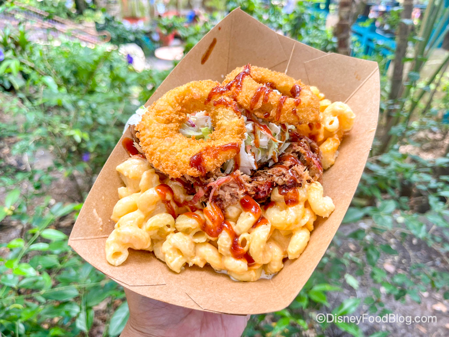 What’s cookin’, good lookin’? This mac at Flame Tree Barbecue in Animal Kingdom is baked and piled high with smoked pulled pork, onion rings, and coleslaw. So, basically, it’s an entire MEAL made with some of our favorite comfort foods.