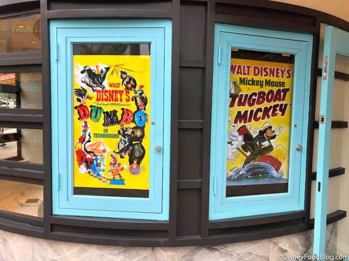 Now the exterior is loaded with cheery classic Disney cartoon posters lining the windows as well as nods to old Hollywood tucked in the windows as you enter.