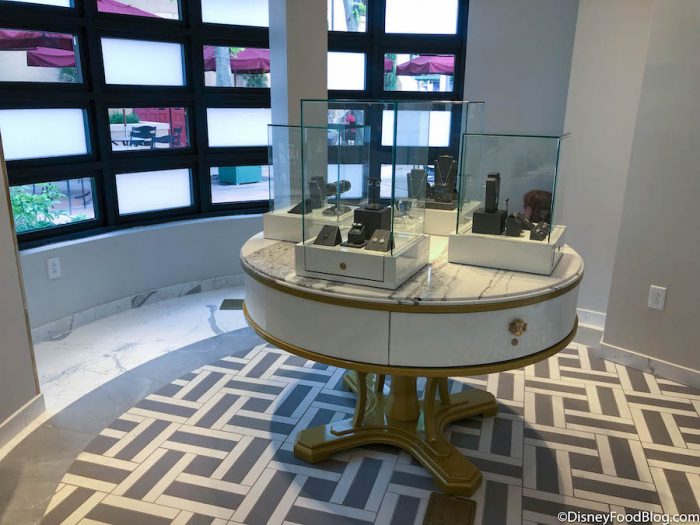 We loved this jewelry display and the cool window design behind it. You almost forget you’re in the middle of a theme park!