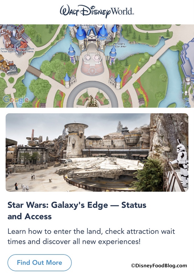 - “Ensure that you have the latest version of the My Disney Experience app downloaded. Enable push notifications to be notified when it is your turn to enter Star Wars: Galaxy’s Edge.”
