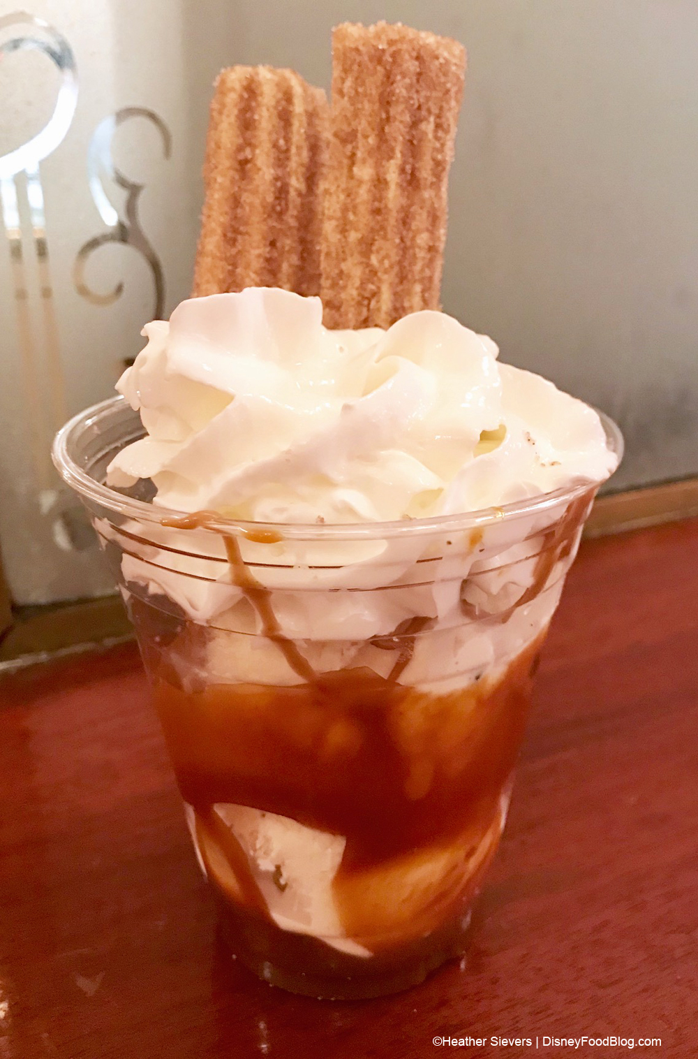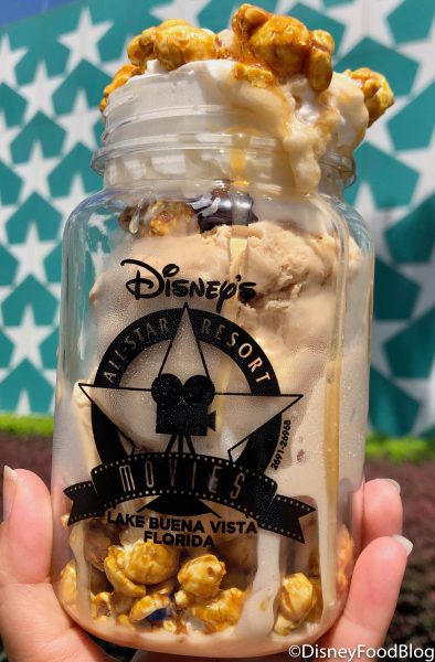 Lately, we’ve really enjoyed the monthly sundaes at the World Premiere Food Court at Disney’s All-Star Movies Resort. We most recently ordered the Cinema Caramel Popcorn Sundae and LOVED IT. It was SO SO good, you guys. I mean, what could go wrong when you’ve got dulce de leche ice cream, caramel, and whipped cream?!