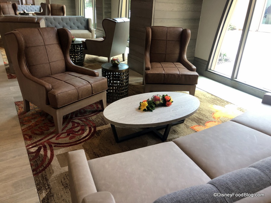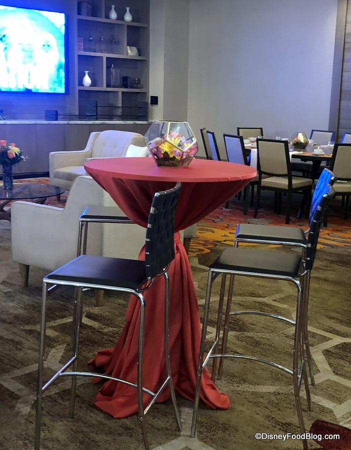 In addition to the options for couch and armchair seating, high-top tables and bar-height seating is available.