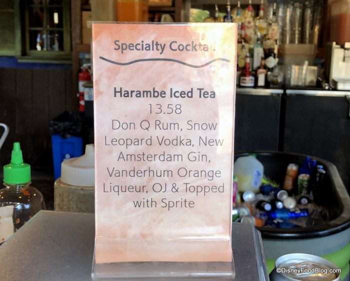 At Africa’s Dawa Bar, we noticed a new specialty drink called Harambe Iced Tea. This drink consists of Don Q Rum, Snow Leopard Vodka, New Amsterdam Gin, Vanderhum Orange Liqueur, and orange juice, topped with Sprite.