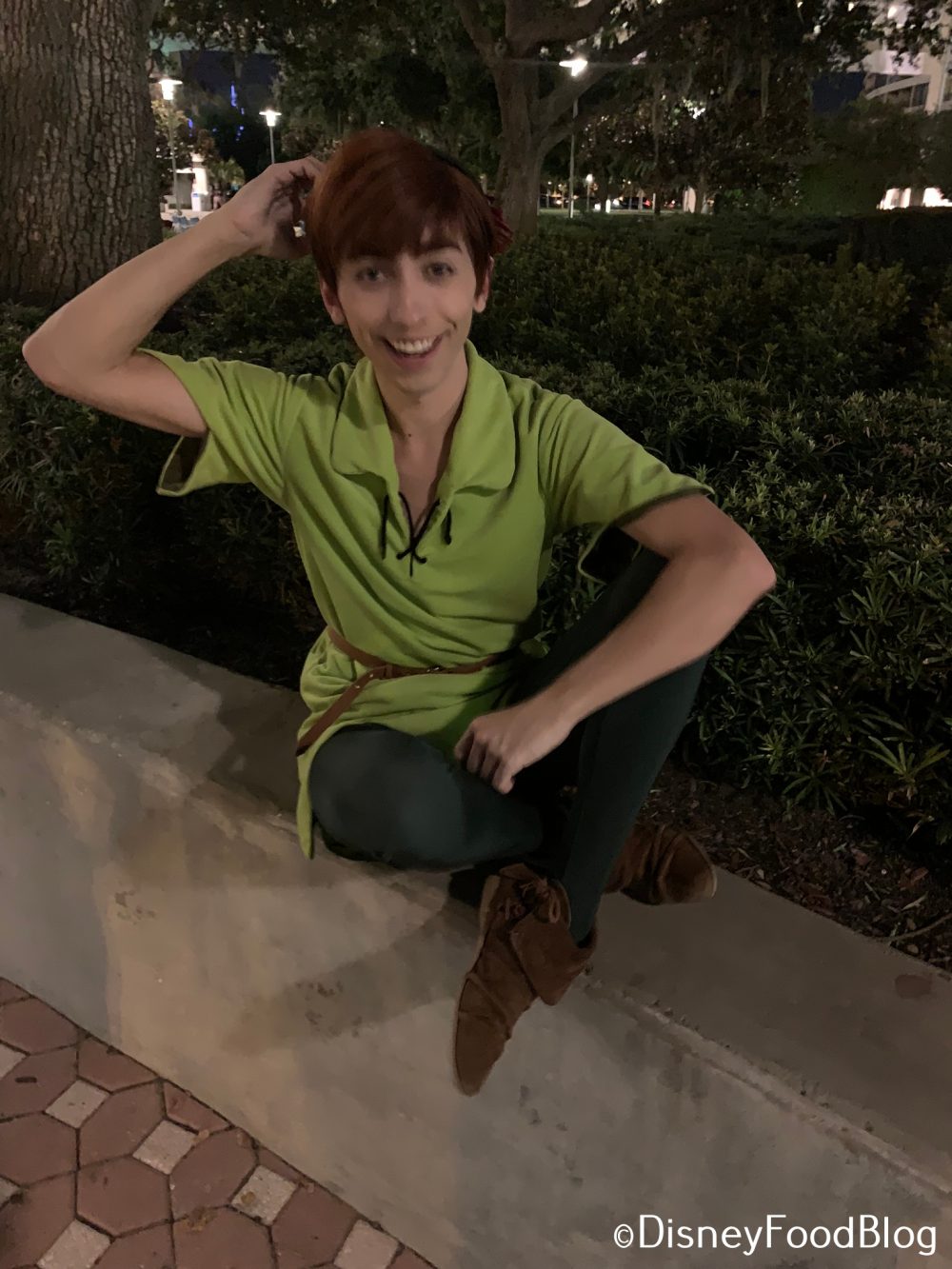 It’s Peter Pan! He was waiting on the Contemporary Boat Dock, with Tinker Bell in hand. As we disembarked, Peter led us to a courtyard area.
