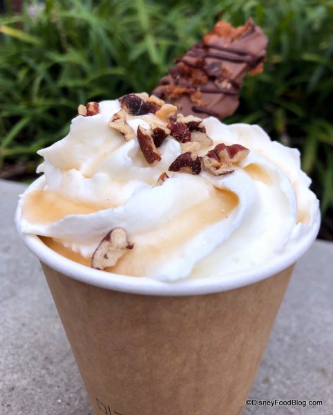 The gelato milkshake was topped with rich caramel sauce, whipped cream, graham cracker crumbles, and a dusting of pumpkin spice.