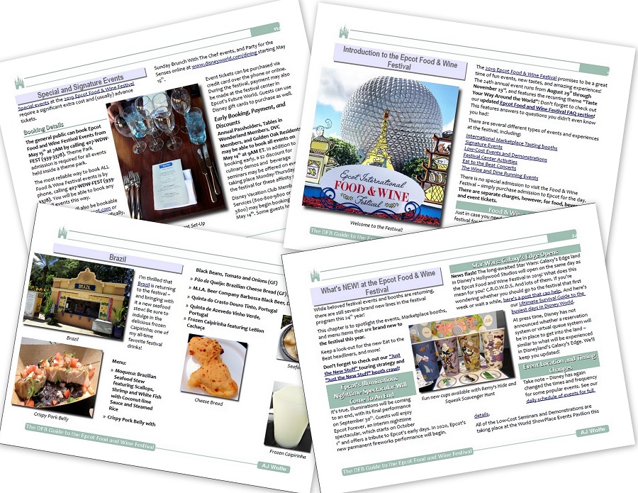 The DFB Guide to the 2019 Epcot Food and Wine Festival is a PDF ebook with 250+ pages of detailed information about the Festival as well as hundreds of photographs and customized bonus items to help you get the best experience possible.