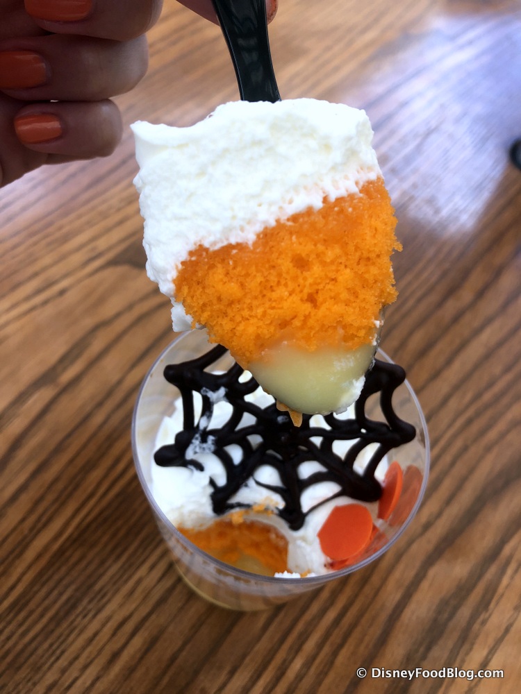 …And although we were sorta expecting the Candy Corn Verrine to taste like, well, candy corn, as the name implies, we were relieved to find it actually had more of a citrusy flavor!