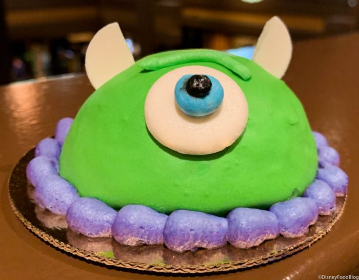 You can find the Mike Wazowski dome cake at Kona Island in Disney’s Polynesian Village Resort for $5.99 or a snack credit if you’re on the Disney Dining Plan!
