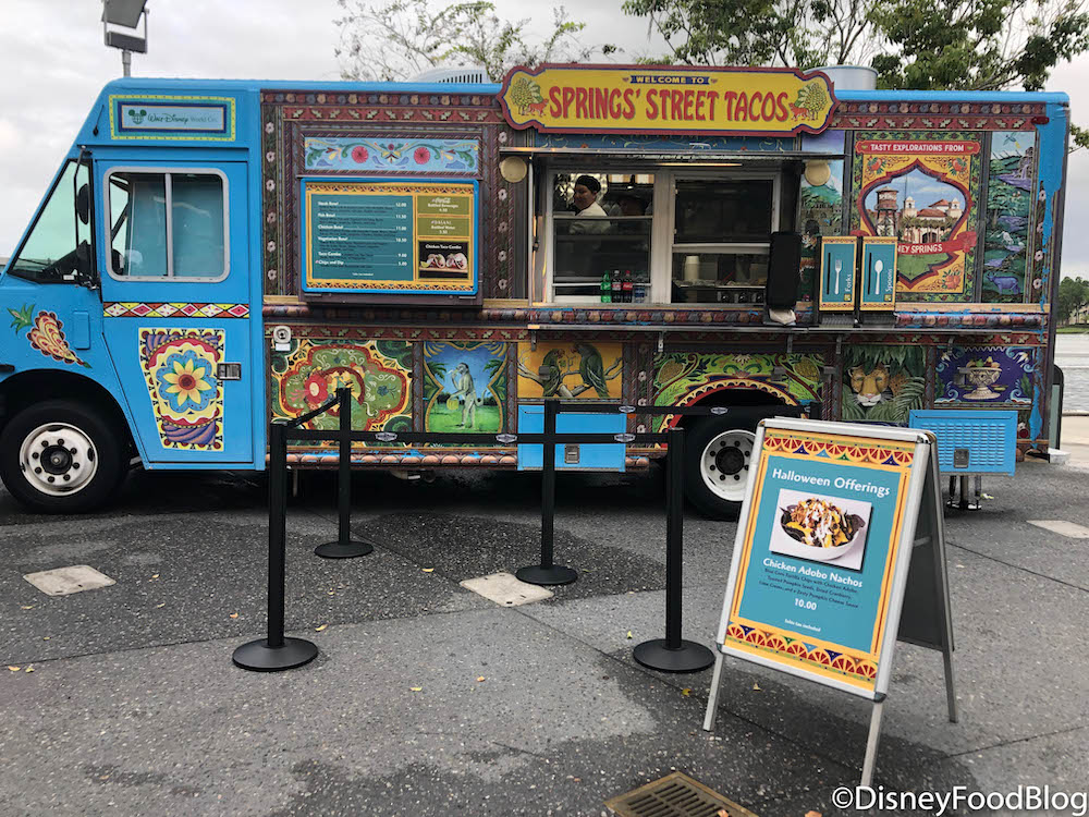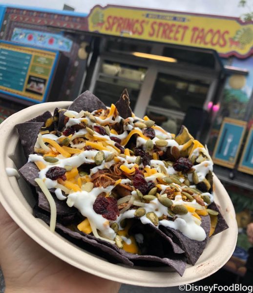 The Chicken Adobo Nachos have made their tasty debut as the Halloween offering at Springs’ Street Tacos Food Truck in Disney Springs!