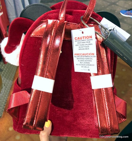 The back of the backpack is made out of a soft red velour material while the straps are made out of a shiny metallic fabric! Um yeah, it’s totally sleighing the game!