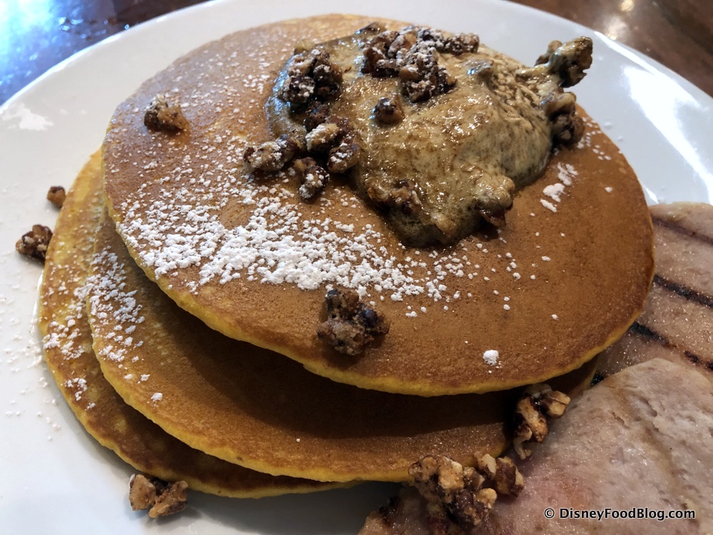 The Pumpkin Pancakes cost $14 and come with your choice of bacon, spiced ham, or sausage. We asked a Cast Member how long they’d be hanging around for, and after verifying with the chef, it seems likely they’ll be at Kona Cafe until at least Thanksgiving — and maybe a little white after! But remember, anything can change at Disney sooo ya never really know!