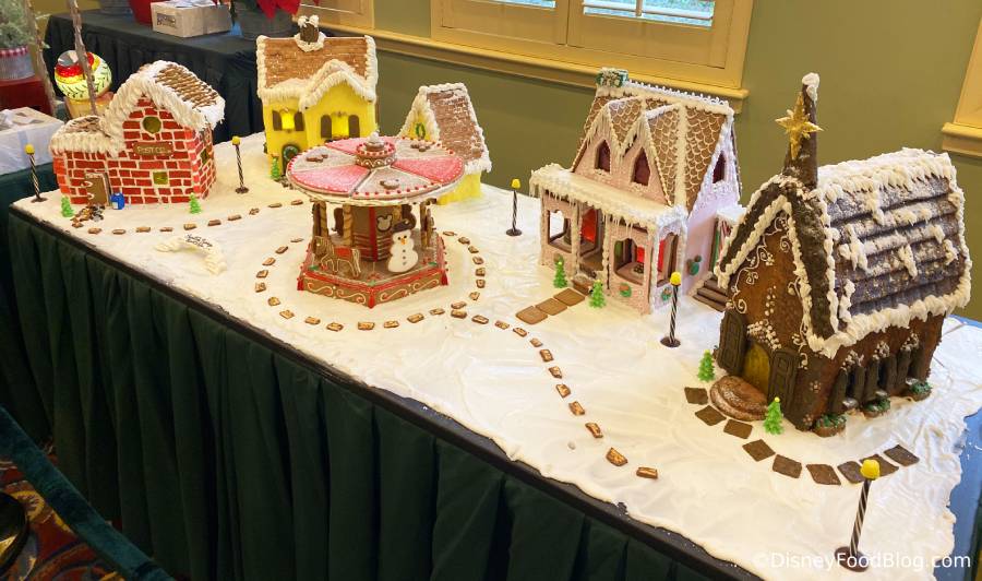 You’ll likely be able to find some gingerbread outside of the resorts too! Last year, we spotted a super cute gingerbread display at Amorette’s Patisserie in Disney Springs to go along with all the fun holiday treats there.
