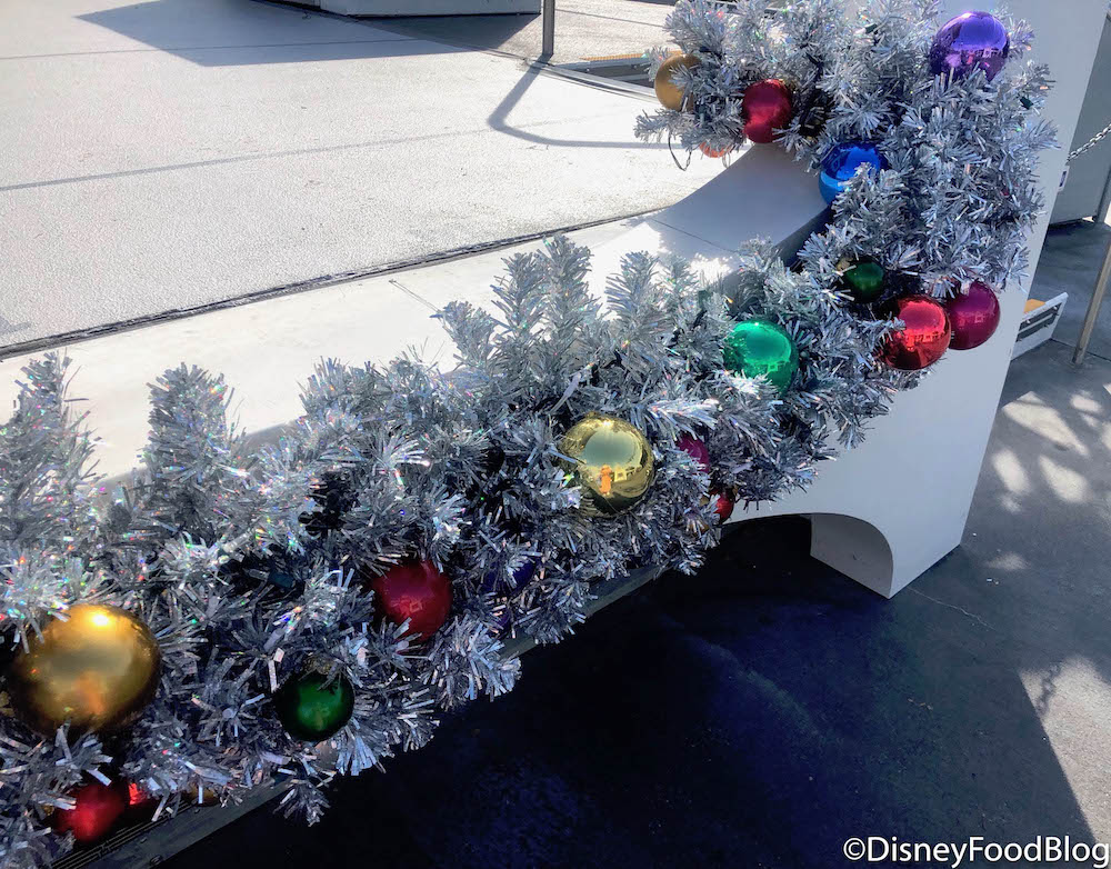 We’re feeling pretty merry with all the Christmas decorations going up in Magic Kingdom. While we’ve seen Main Street haul out the holly with wreaths and treats, we’re heading to the most futuristic land in the park to check out MORE decor!