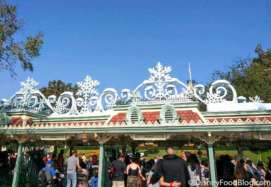 You don’t need to go any further than the entrance to start seeing the holiday magic here at Disneyland! The front gate looks like a winter wonderland, complete with beautiful snowflakes!