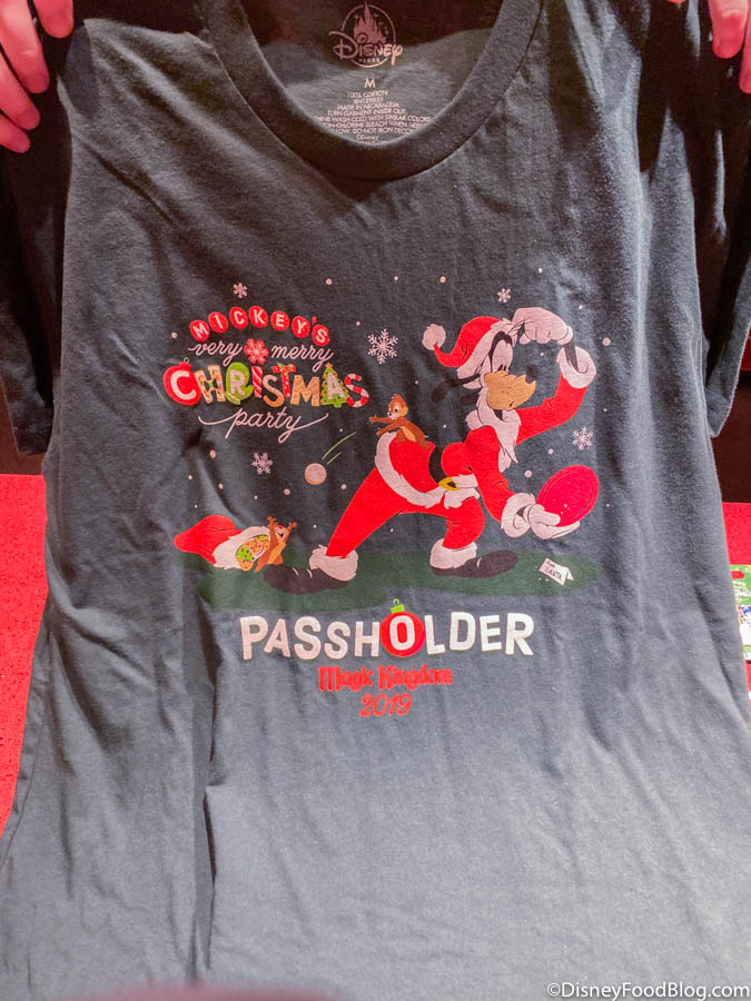 If you’re a Disney World Annual Passholder, you can get your hands on this adorable Passholder-exclusive Mickey’s Very Merry Christmas Party t-shirt for $29.99! How cute is Goofy in his Santa outfit?!