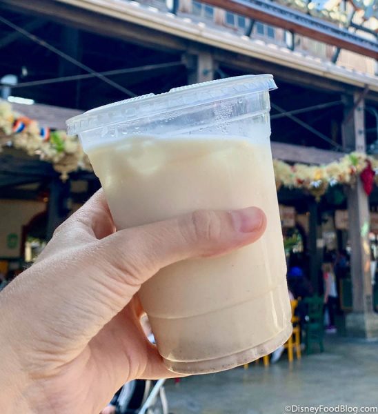 If you’re more interested in saving room for the more Christmas-y offerings at some of the Festival Marketplaces, there’s still a fun Festival special at the Cocina that won’t fill you up too much! Grab the super refreshing Horchata Agua Fresca! This milk-based drink is just the right amount of sweet with a nice taste of cinnamon — if you love horchata (like we do) you don’t want to miss this!