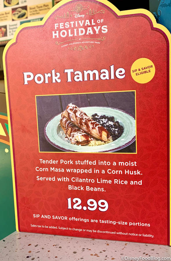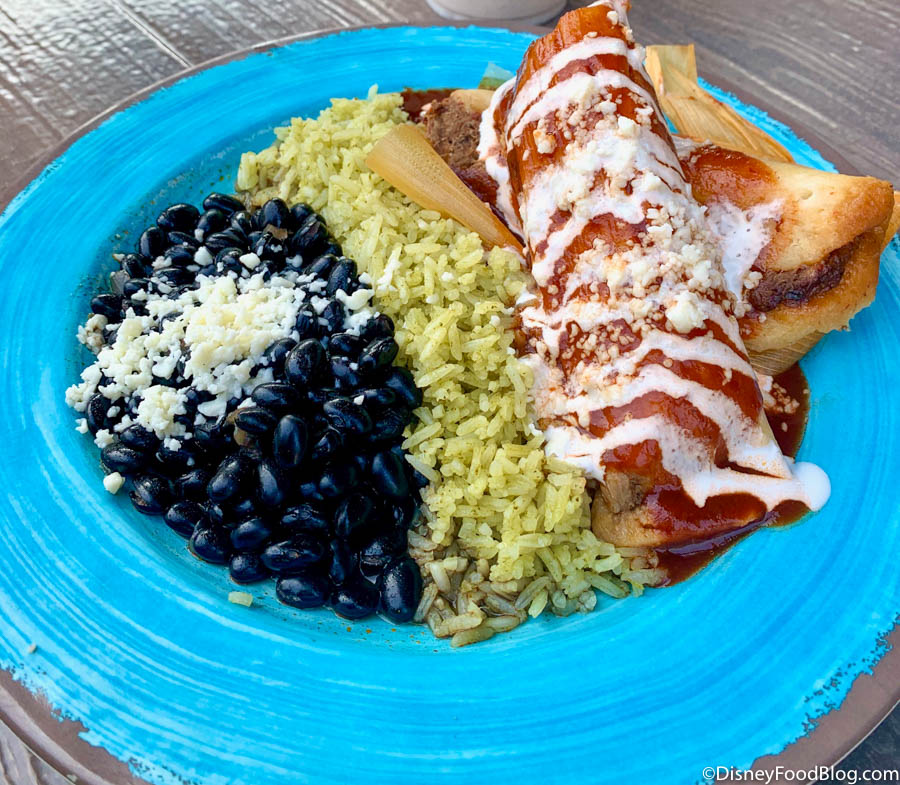 Cocina Cucamonga is a great quick-service spot in California Adventure for filling Mexican dishes and boy, do they have a hefty holiday special for Festival of Holidays this year! Check out this MASSIVE Pork Tamale plate.