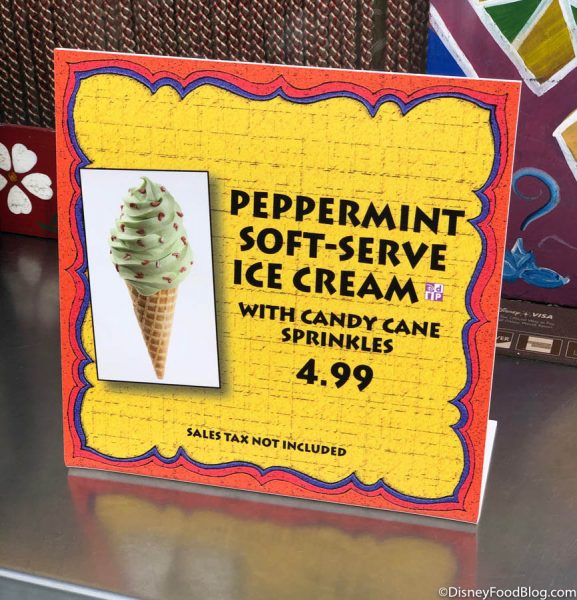 Over in the Asia area of the park, decor celebrates the Hindu holiday Diwali, but the snacks? They’re ready to rock around the Christmas tree (of Life)! Anandapur Ice Cream Truck is bringing the cool with Peppermint Soft-Serve!