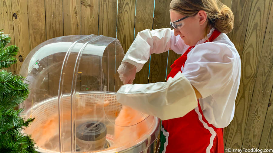 At the nearby merchandise shop for the Tree Trail, a Cast Member is also available to hand-spin you a helping of Gourmet Fall Spice Cotton Candy.