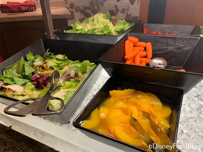 First up, the salad bar. There are all the necessary fixins’ to make a yummy salad. While this isn’t super exciting, it’s sometimes nice to enjoy some greens amongst all the carby, sugary goodness that is eating in Walt Disney World.
