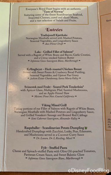 But first things first, DRINKS! Akershus has a wide variety of beer, wine, and specialty cocktails, as well as a few non-alcoholic specials. (Note you can even get Norwegian water! How’s that for authentic?!)