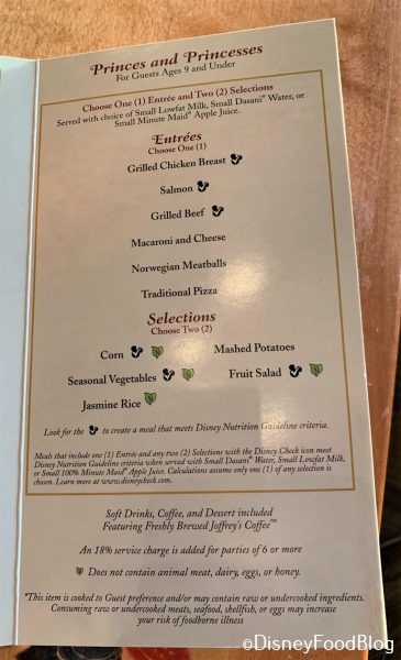 In the end, Akershus is still a winner in our book. Is it the best food you’ll ever eat in Walt Disney World (or even World Showcase)? No. But it is quite good for a character dining meal. Between the cold bar (which again, you can visit over and over should you choose), quality entrees, and dessert trio, we don’t have any major critiques about the food. The biggest negative of Akershus is the cost — it’s pretty pricey for a sit-down meal, especially if you’re gauging it on food alone. (It’s an incredible use of ONE dining plan credit though.)