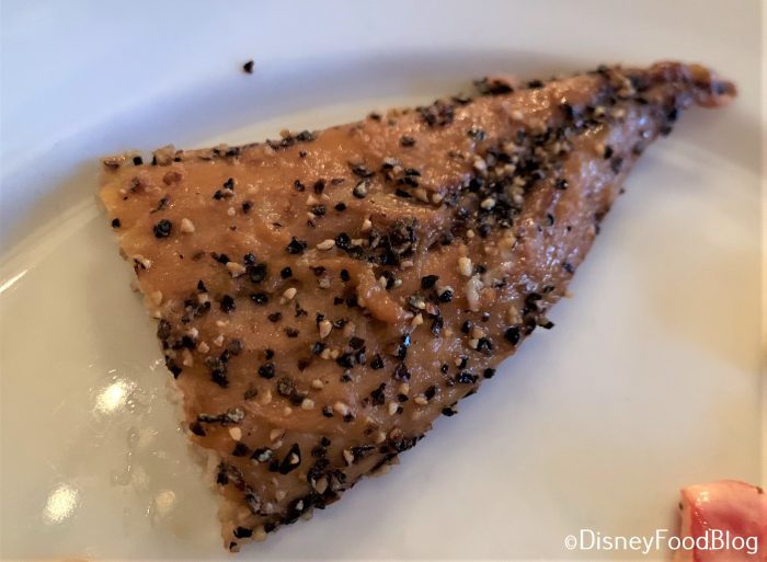 This one reminded us of a thick tapioca pudding, consistency wise. But it was really quite flavorful, thanks to the strawberry sauce! A Cast Member let us know this is what his family eats at special occasions. While some people may not love it because of the consistency, it was a fun, unique dessert to us.