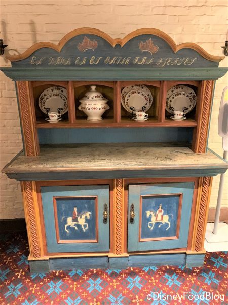 Like we’ve said, Akershus is located in Epcot’s Norway Pavilion, and is themed to be an old castle. In fact, upon entry, you can read this giant storybook explaining the Castle’s heritage.
