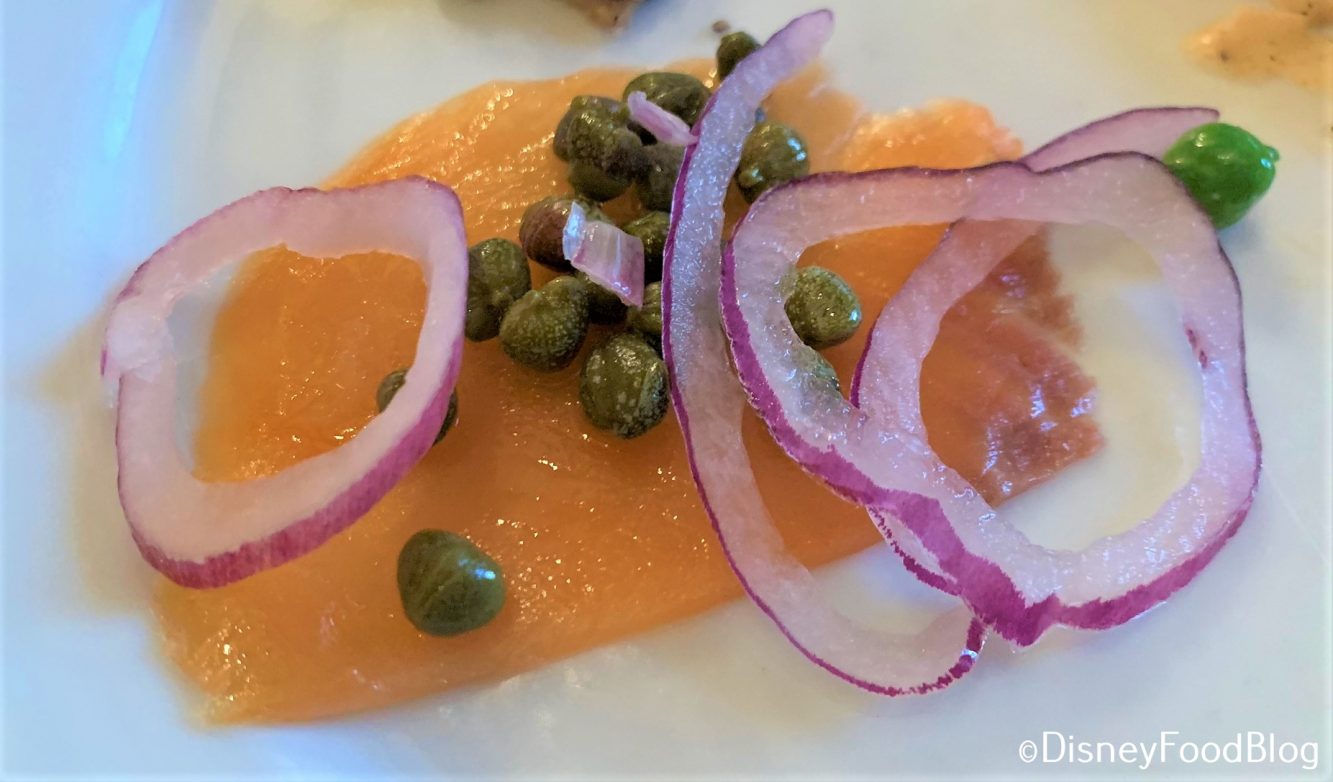 Still in the cold fish category, is the salmon. Now this one was certifiably fresh and had all the toppings you’d need — red onion, capers, hard-boiled eggs. This is the sort of item that really elevates Akershus from other character meals on property. Typically you don’t associate fresh salmon with this category of dining, but we are in Norway after all!