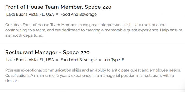 We recently shared the news that the upcoming restaurant had lost its executive chef. Fear not space cadets, we have EXCITING news to share with you today. The Patina Restaurant Group is actively hiring a TON of positions for the space-themed culinary destination. A job posting on the Patina Restaurant Group site shows that they are hiring a Front of House member, Restaurant Manager, and several other positions.
