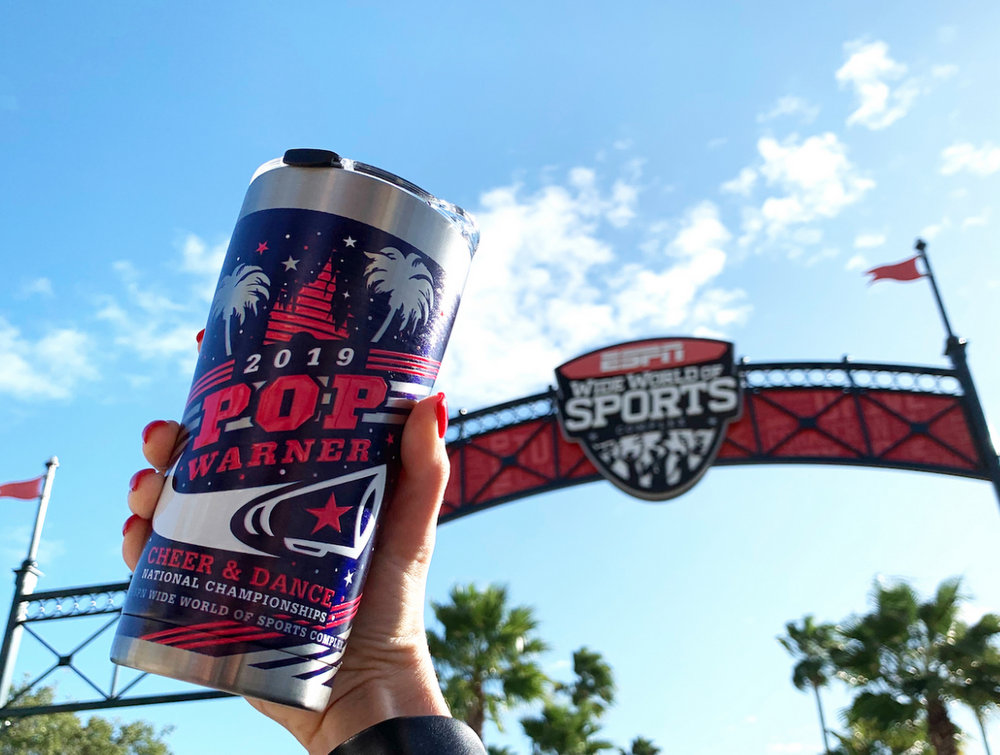 Take a first look at some of the merch that will be available Saturday, December 7th through Saturday, December 14th at the ESPN Wide World of Sports Complex in Disney World! We’re loving the design on this year’s new Pop Warner Tumbler!